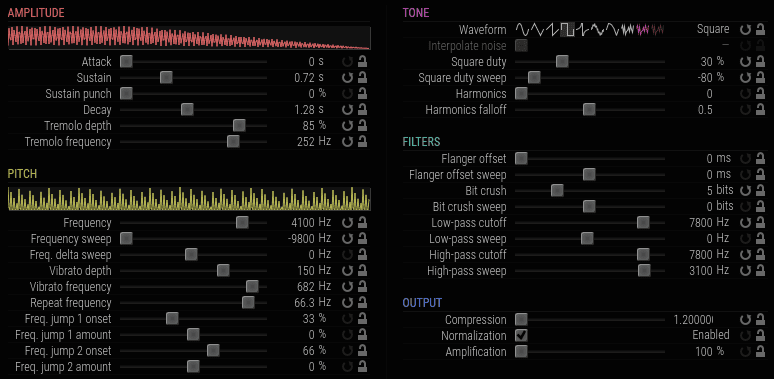 You can use jfxr instead of inputting a sound file (.wav, etc..) by clicking Create given near the parameter
