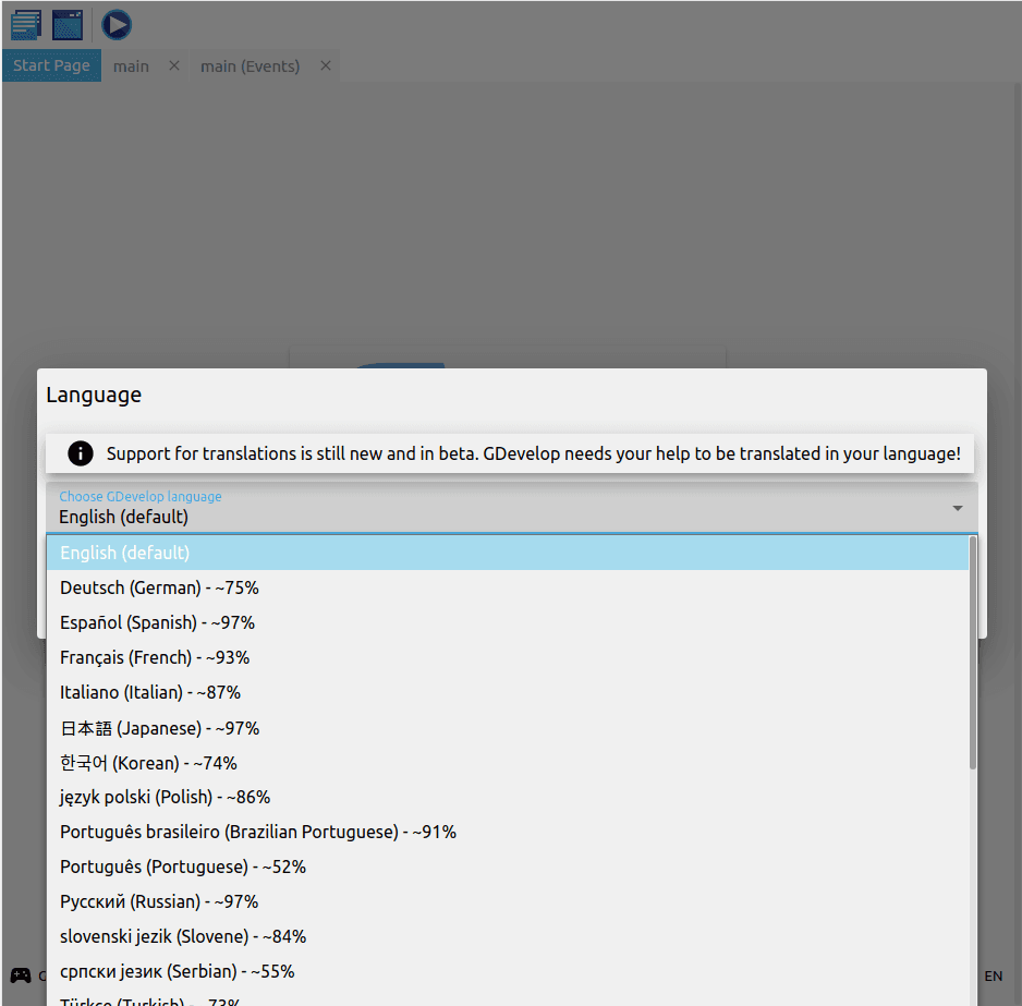 You can help translate GDevelop into your language and report any mistakes. Your help is greatly appreciated.