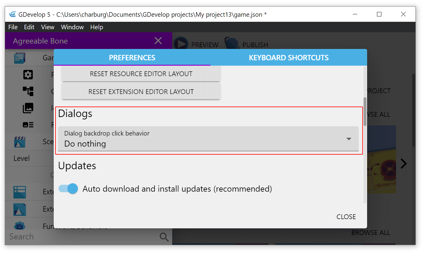 GDevelop displays hints and explanations for certain features. You can turn them off if you prefer.