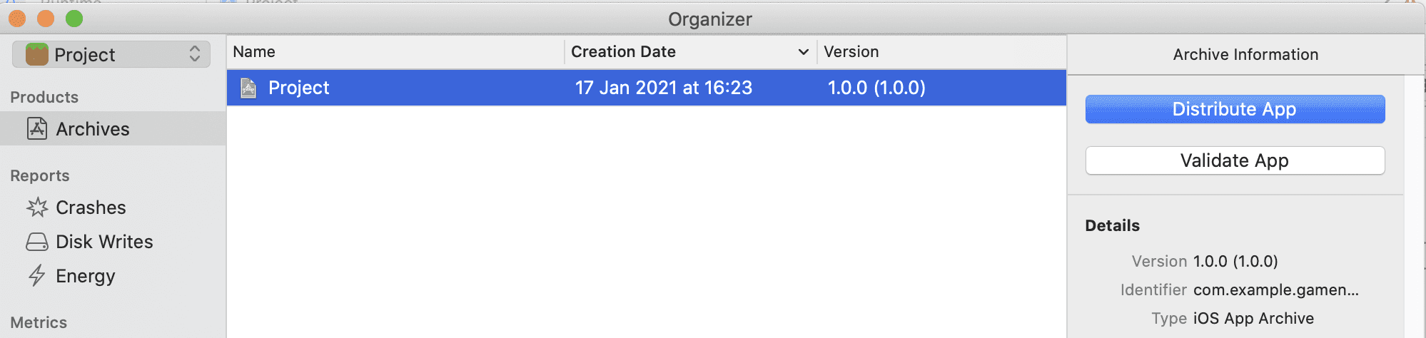 Once Code Signing is set up (XCode should guide you if there are errors) and the Archive process finished, you'll see a list of your app archives. You can now distribute the app to upload it to the App Store: