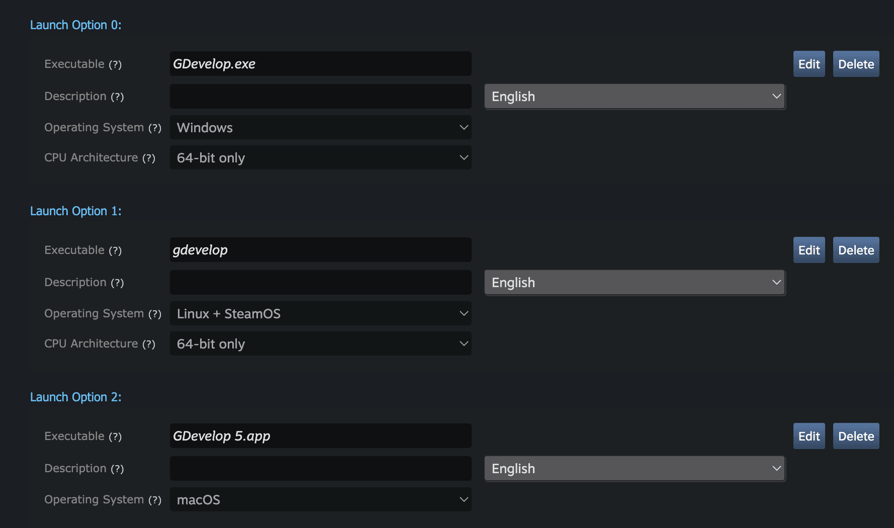 • Worse, Steam seems to be showing a wrong message indicating that "Your current macOS version is unable to run 32-bit games". This message is misleading as GDevelop games are already built for 64-bit macOS.
